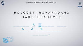 In Locktale, each level presents you with a new challenge - no two puzzles use the same trick! Throughout the 50+ levels, you'll get to learn about a bunch of common ciphers, from basic ones used during the Antiquity up to the tools of modern cryptography. (Oh, and there are also some techniques or symbol-based ciphers I invented just for this game!)